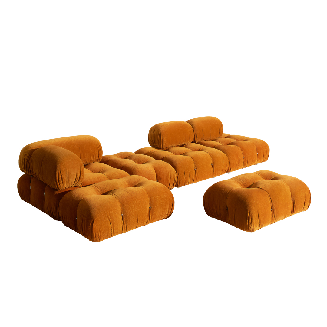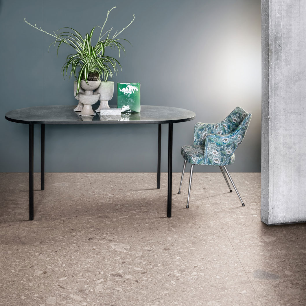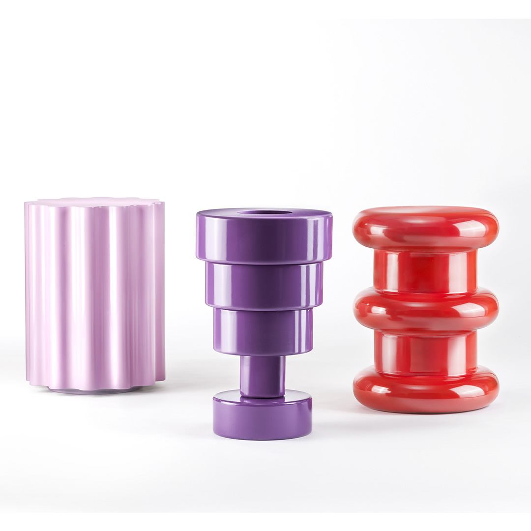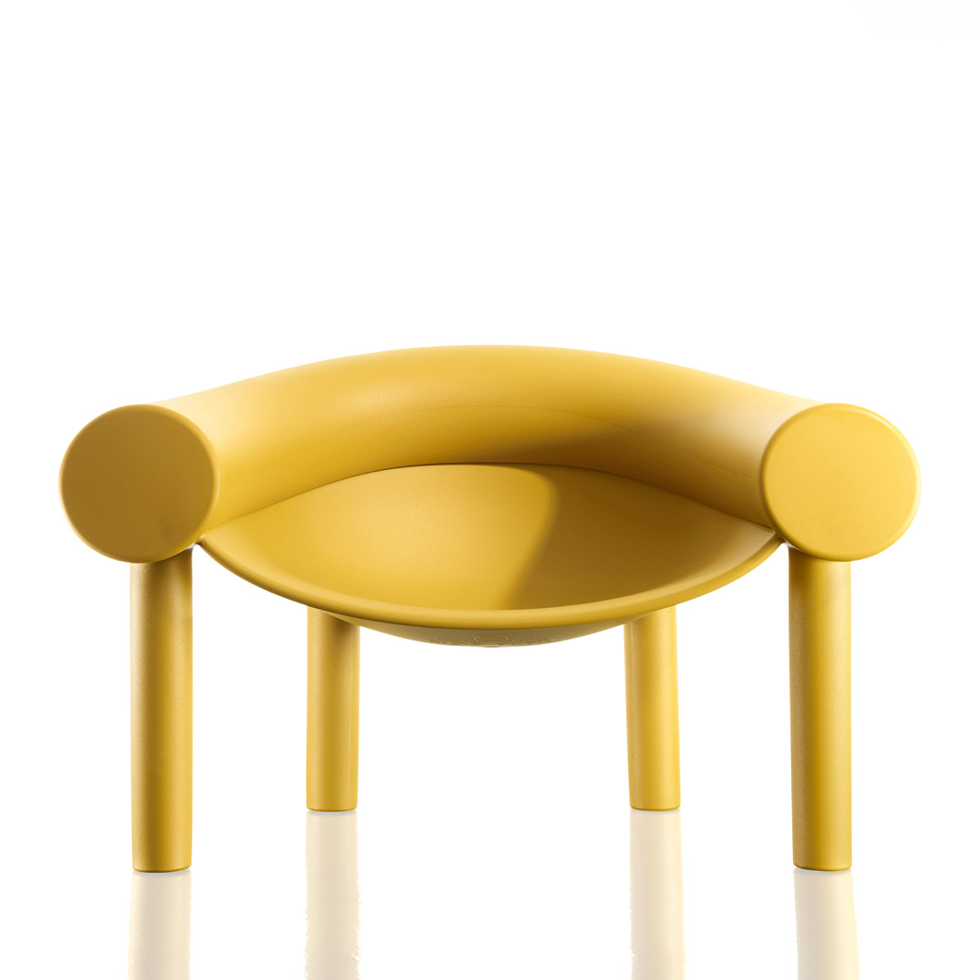 Does form follow matter or does matter follow form? Each furniture, characterised by large, enveloping volumes, responds in its own way. Seductive, these furnishings clearly define their design and occupy the space boldly with curves and solids. Their cartoon DNA dictates their shapes and technology helps launch the challenge of typological change, to subvert the rules. Just as an entire sofa can develop from a single cushion, so an upholstered armchair softens the Brutalist-inspired lines. Also, an enormous horseshoe-shaped, sausage-like cushion defines the back and armrest of a wide low chair, obtained by two different rotational mouldings and combining a rigid plastic and a more elastic polymer. A rigid polyurethane curtain gives sculptural features to a table base. A wide Latex strip characterises a cosy chaise longue mounted on a tubular metal frame covered with a polyurethane foam coating. The sensation of looking at something modelled on a freehand sketched idea does not change if the material is fragile, transparent and diffuses light. Nor if one strengthens the wooden legs of chairs and consoles while maintaining grace. The elegant softness and visual comfort of the furniture is reflected in an environment with the opposite atmosphere: hard, made of metal and ceramic, punctuated by textile backdrops, it exudes a refined and suggestive feeling of rigour and light. Following a trend that is once again current, it accentuates the need for a material presence in interiors. The shades of grey make these items neutral yet lively, capturing and reflecting the flashes of light of the surrounding environment and what it contains, also prompting bold combinations. The wide proportions of the furnishings fade in the reflections of the walls and show their plastic, natural and organic lines to the point of turning the real world into an imaginary realm. A metaphor for a place that becomes welcoming again.