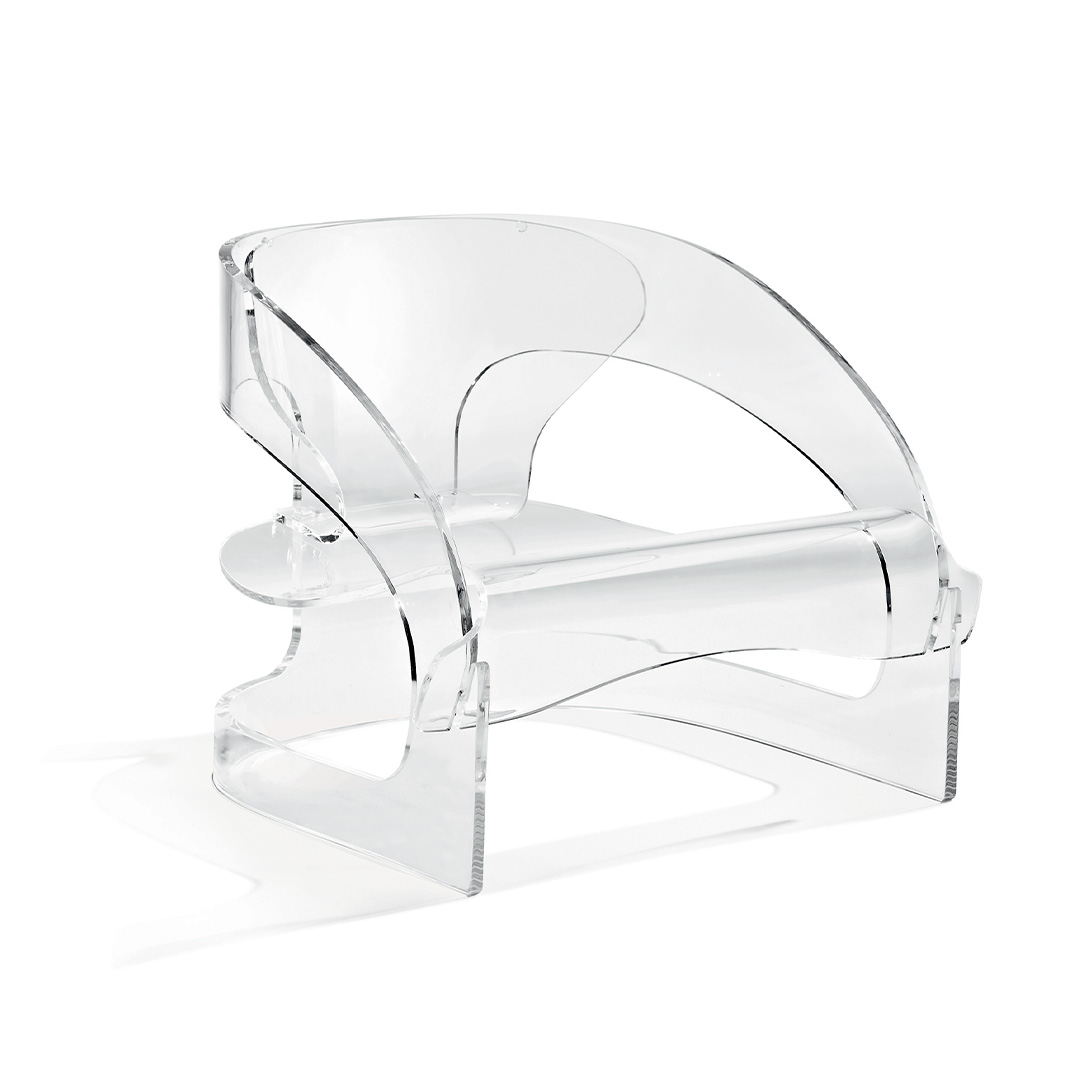 La forma segue la materia o è la materia a seguire la forma? Rispondono ognuno a proprio modo, gli arredi definiti in volumi ampi e avvolgenti. Seducenti, modellano nelle curve e nei pieni la chiarezza del loro disegno e occupano lo spazio con coraggio. La genetica da cartoon detta legge e la tecnologia aiuta a lanciare le sfide del mutamento tipologico e a sovvertire le regole. Come un intero divano riesce a svilupparsi da un solo cuscino, così una poltrona imbottita rende morbide le ispirate linee brutaliste. Invece un enorme salsicciotto a ferro di cavallo definisce schienale e bracciolo di una ampia sedia bassa, ottenuta con due diversi stampaggi rotazionali e combinando una plastica rigida e un polimero più elastico. Un tendaggio da sipario, stampato in poliuretano rigido, suggerisce a un tavolo la voluttà scultorea per il suo basamento. Un largo nastro di elatex delinea un’accogliente chaise longue su una struttura in tubolare metallico rivestita da una guaina di poliuretano espanso. L’effetto di cosa plasmata su un’idea abbozzata a mano libera non cambia se il materiale è fragile, trasparente e diffonde la luce. E nemmeno se irrobustisce le gambe in legno di sedie e consolle mantenendo la giusta grazia. L’elegante morbidezza e il comfort visuale degli arredi si riflette in un ambiente di sentimento opposto. Durissimo, di metallo e ceramica, intervallato da quinte tessili, diffonde un ricercato effetto scenico di rigore e luce. Citazione di una tendenza ancora una volta attuale, accentua il bisogno di una presenza materica negli interni. Le sfumature dei toni del grigio creano una neutralità sempre viva, intercettando e restituendo i bagliori del contesto e di ciò che contiene e spinge l’azzardo degli accostamenti. Le proporzioni dilatate degli arredi sfumano nei riflessi delle pareti e mostrano le loro linee plastiche, naturali e organiche fino a rendere fantastico il mondo reale. Metafora di un luogo che torna a essere di nuovo ospitale.