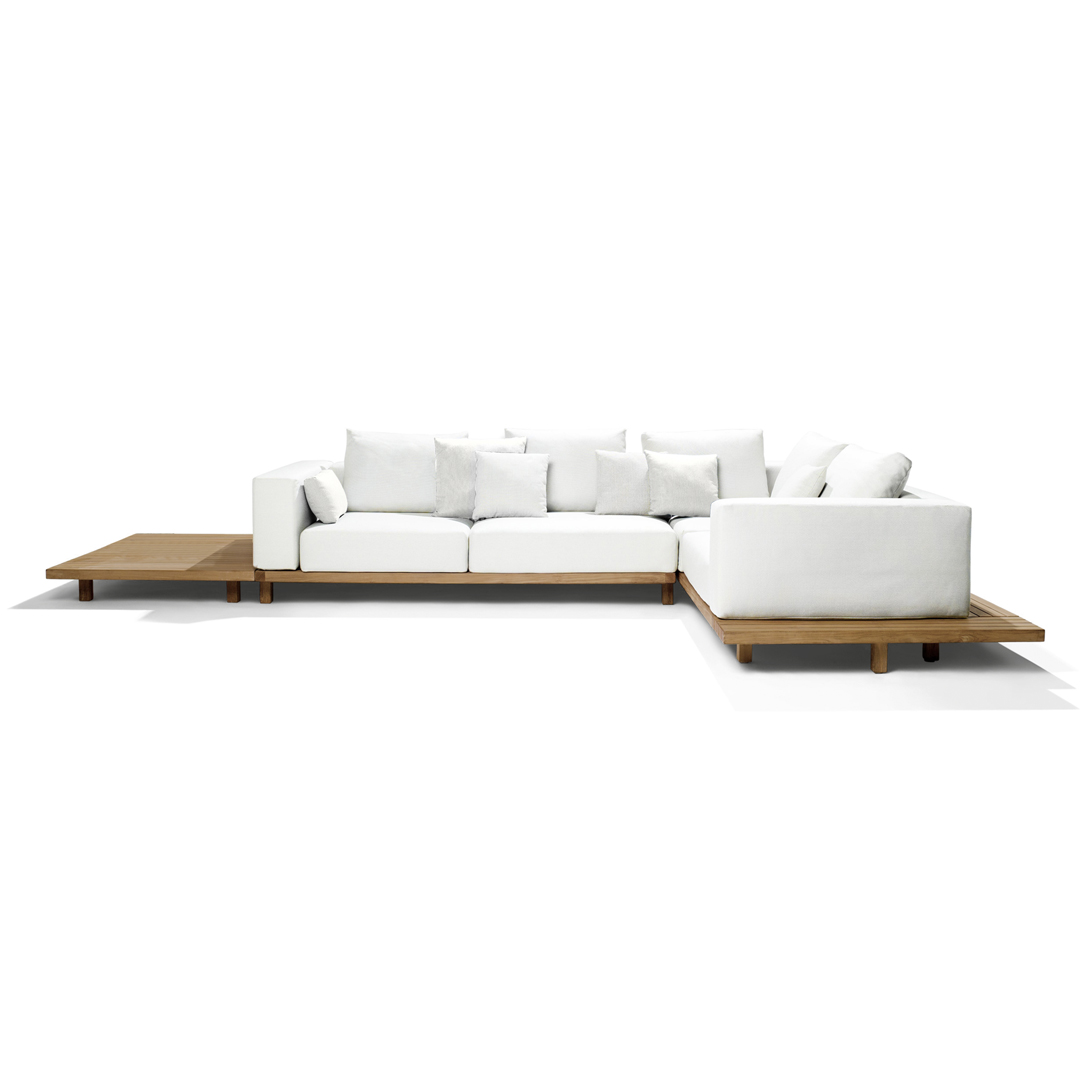 The relationship between the garden and its surroundings is crucial for Antonio Perazzi, who imagined the design of the Courtyard in ideal connection with the nearby green areas of the Porta Venezia area. The backdrops are made of greenery characterised by red hues, and thanks to the furnishings designed by Tribu are in tune with the rooms of the exhibition itinerary. They welcome and engage the visitor, thanks not only to their enveloping form, but also to the vegetal textures, the graphic features of the leaves and the contrasts. They define a boundary which is a permeable and protected at once and induce visitors to stop and discover nature. It is a place of fusion and contact with the environment and other people, imbued with the charm of imperceptible things, such as scents and shadows. It recalls the mix of nature and art typical of the Mediterranean garden, particularly dear to Perazzi. With this undertaking, the landscape architect seems to reaffirm what he calls his cornerstones: “aesthetics, functionality, economy, ecology, preciousness”. And, in his own words, his personal design point of view: “The work of the garden designer does not only consist of giving shape to an outdoor living space; it also involves the ability to work together with the plants, adapting to their own character to achieve a common goal of harmony and balance”. Nothing could be more consistent with the concept developed for ‘Design forever’, here emphasised by the furnishings of the Belgian brand Tribu. Specialising in the outdoors, understood as an extension of the home, with its furniture and accessory collections it aims to “make people forget about everyday stress”. An invitation to relax, which becomes even more tempting at dusk, when the illumination mingles with the intimate light of candles and the natural silvery glow of the moon.