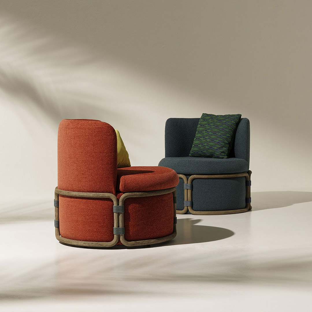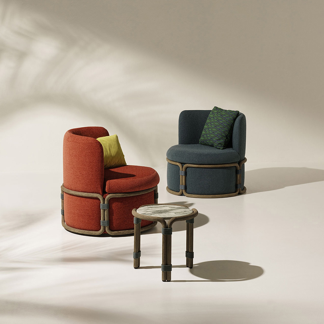 Fuori o dentro? La presenza generosa delle piante, le finiture degli arredi, i materiali di rivestimento di pavimento e pareti, i colori dominanti del rosso spostano il confine indoor/outdoor e fanno pregustare la stessa rilassatezza della vita all’aria aperta, dialogando con il giardino del Cortile. Da luogo abitualmente riservato a pochi, il Ristorante si apre per l’occasione ai visitatori di ‘Design Forever’. Come in tutto il percorso della mostra, anche questo ambiente si trasforma senza dimenticare l’allure storica del Palazzo. Sembra perdere le sue pareti e, con velata ironia, compone zone per mangiare e conversare strizzando l’occhio ai salotti aristocratici, e poi borghesi, del passato. Spariglia le carte. E vince il linguaggio contemporaneo fatto di accostamenti di segni diversi in una atmosfera di diffusa armonia.