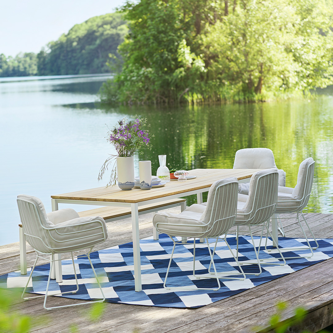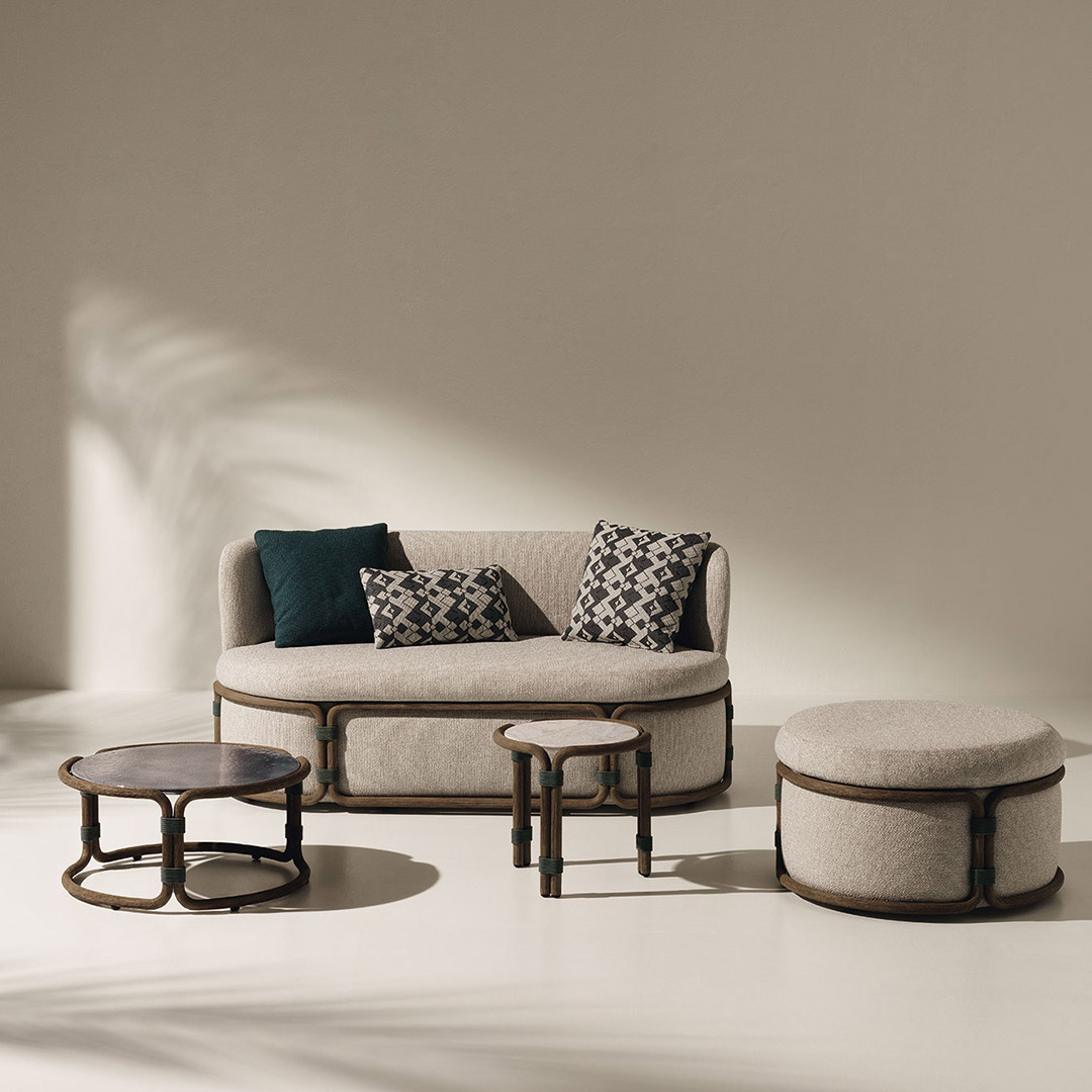 Outside or inside? The abundant greenery, the furnishings’ finishes, the floor and wall covering materials, the dominant shades of red almost dissolve the indoor/outdoor boundary and give a foretaste of the relaxing outdoor atmosphere. In dialogue with the courtyard garden. Usually reserved for limited guests, the restaurant opens to the visitors of ‘Design Forever’. As seen throughout the exhibition itinerary, also this space is revamped without forgetting the historical allure of the Palace. The room seems to have lost its walls and accommodates areas for dining and conversation that somewhat resemble, with subtle irony, the aristocratic and later bourgeois salons of the past. It’s a game changer. And the contemporary taste for combining and harmonising different styles, here wins.